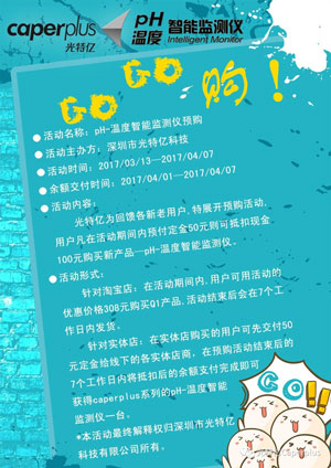 3.13—4.7,参与预购活动,预付50抵100!市场定价358元的pH智能监测仪,308元就可以到手啦~