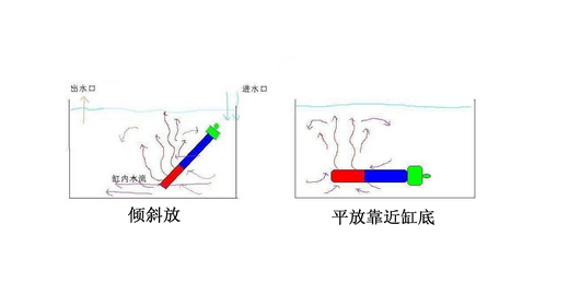 正确摆放鱼缸加热棒的方法。
